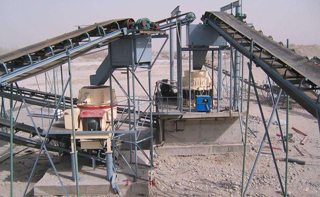 時(shí)產(chǎn)200-250噸河卵石制砂設(shè)備,通過自卸車將小于210mm的石料送入振動(dòng)給料機(jī),振動(dòng)給料機(jī)把石料均勻的送入CS高效彈簧圓錐破碎機(jī),圓錐破對(duì)石料進(jìn)行第一段破碎后,通過圓振篩將大于40mm的返回圓錐破重新破碎,40mm以下的石料送入制砂機(jī),最后,通過圓振篩對(duì)成品料進(jìn)行分級(jí)篩分,由皮帶輸送機(jī)輸送至成品區(qū)。