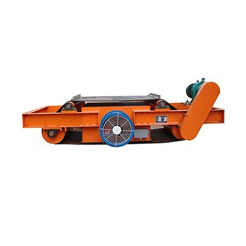 RCDC型風冷電磁除鐵機,是在RCDA系列除鐵器的基礎上增加了驅動電機、滾筒、帶刮板的卸鐵膠帶等組成的卸鐵機構。在工作過程中卸鐵機構自動將卸鐵皮帶吸附的鐵磁性物質卸到集鐵箱內,無需停電人工清理,實現了除鐵自動化。